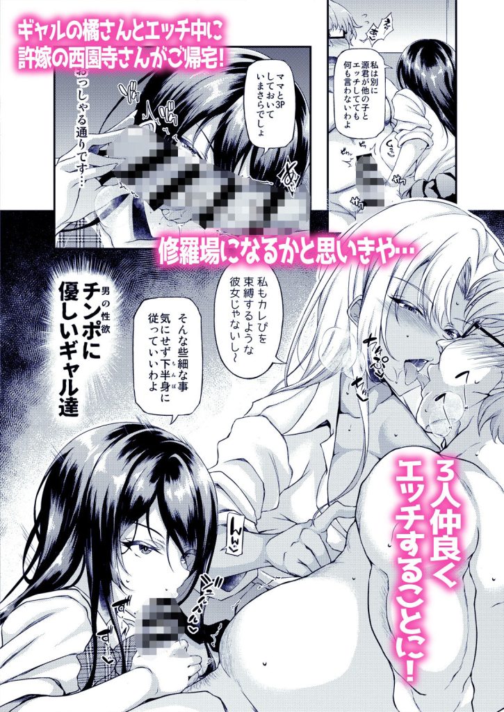 『家出JKちゃんを泊めてあげたら僕の家がヤリ部屋に』の第4弾。源君の家にて許嫁の西園寺さんと彼女の橘さんが鉢合わせ!修羅場になるかと思いきや、2人の気が妙に合っていて…