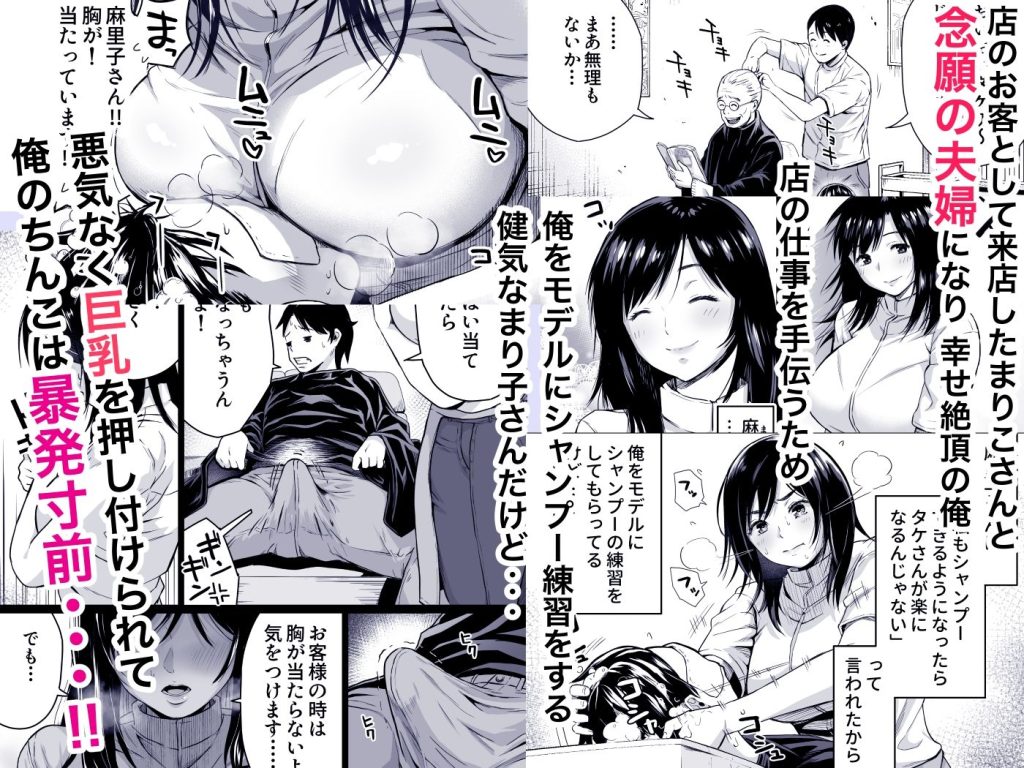 自分も店を手伝う為に、タケをモデルに洗髪の練習に励む健気な麻里子さんだが